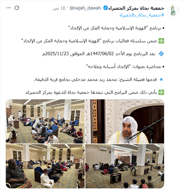 جانب من محاضرة بعنوان: "هوية المسلم" الشيخ: أحمد يحيى حمود الجابري يوم الأحد 1447/05/18هـ