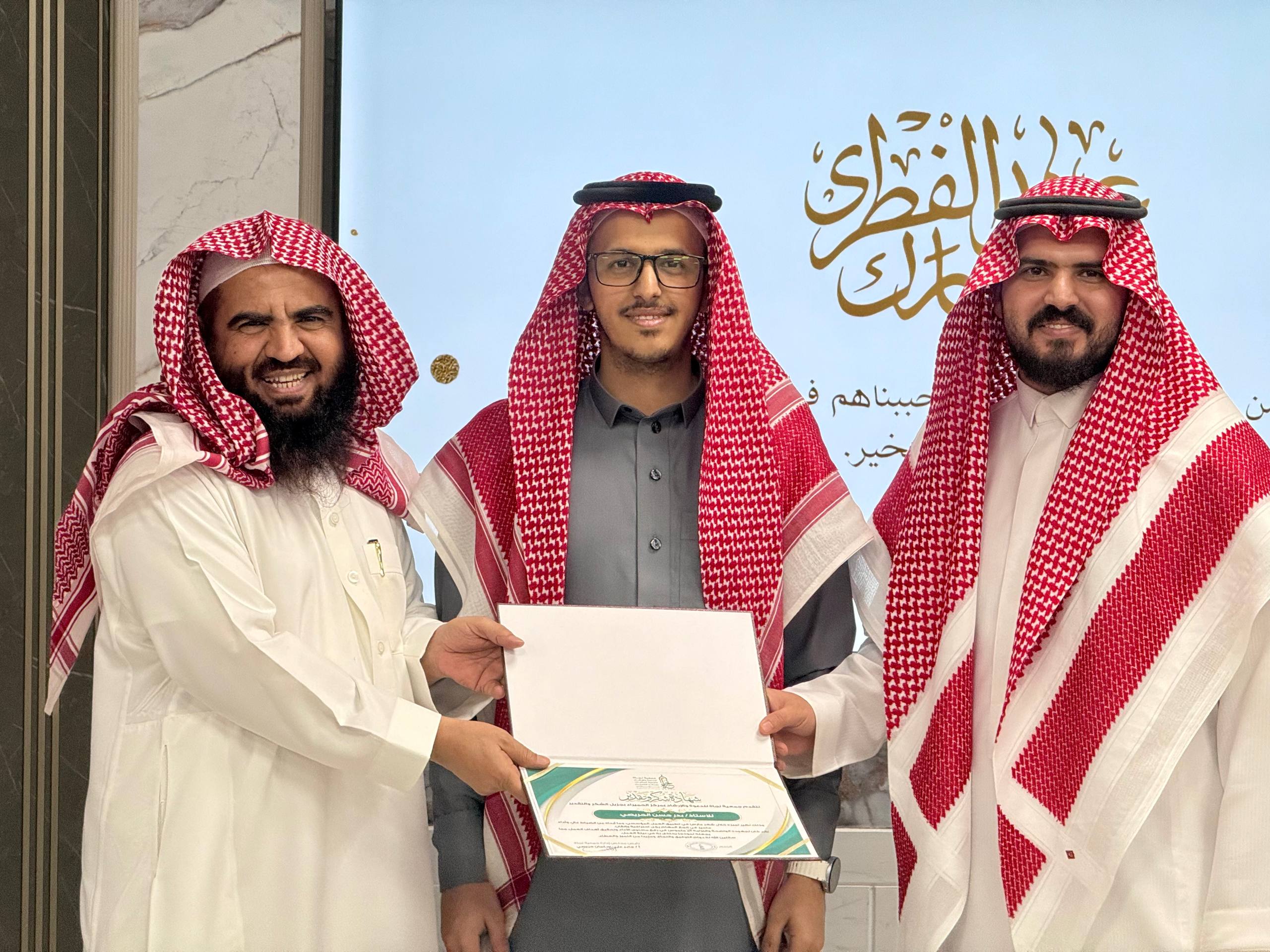 بمناسبة عيد الفطر المبارك لعام 1447هـ، وفي أجواءٍ يسودها الودّ والألفة وتعكس روح المحبة والتآخي بين الزملاء، أقامت جمعية نجاة للدعوة والإرشاد وتوعية الجاليات بمركز الحميراء حفل معايدة لمنسوبيها، وذلك تعزيزًا لروح التواصل وتوطيدًا للعلاقات الأخوية داخل بيئة العمل.